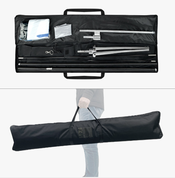 The standard ground stake can be used to install in soft ground, while the cross base or square base are heavy duty for hard surface staging. The optional carry bag is great for when you plan to travel with or store your flag.